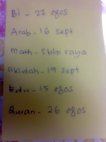 pejam celik pejam celik dah 25 hari kita puasa kan. rasa kejap jer. ada yang dah start cuti. tinggal aku jer sorang2 di perantauan ni. huhuhu. tipu jer. esok baru start cuti. esok jugak aku balik rumah. walaupun esok ada lagi satu kelas tapi otak jiwa dan raga aku semua dah ada kat rumah. tak sabar nak uli2 kuih raya dengan kakak2 dan adik2 aku. bestnya taun ni kakak ngan abang aku yang dah kawen pun raya ngan kami. tak macam taun lepas. sunyi jer rumah kalau tak da budak2.