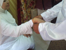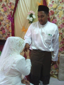 sentuhan pertama. respect ah abang aku ni. kawen pilihan family sebab dia tak reti nak cari sendiri. huhuhu. tu yang nampak malu2 lagi tu. dah lama2 tak tau malu la pulak macam adik depa ni. kahkahkah
